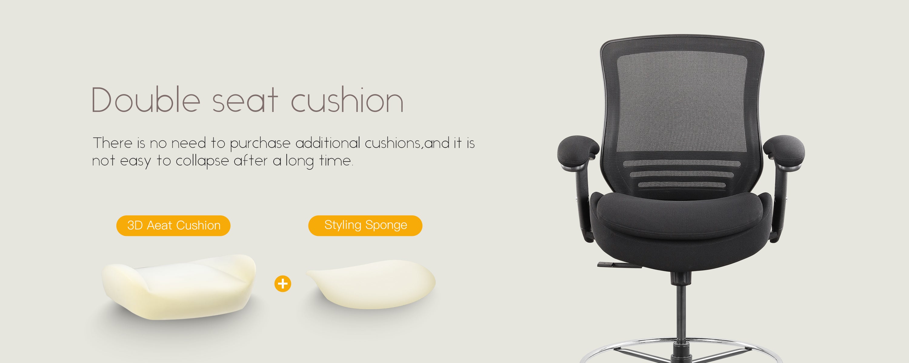 - Comfort: The cushions are made of one-piece foam-molded qualitative foam and have a high resilience and are even softer. The upper cushion is also made of qualitative foam. The double-layer cushion makes the chair more comfortable to sit on, and the sponge is not easy to collapse after sitting for a long time. Users do not need to spend money to buy additional cushions after the experience, will not cause discomfort to the buttocks after sitting for a long time.
